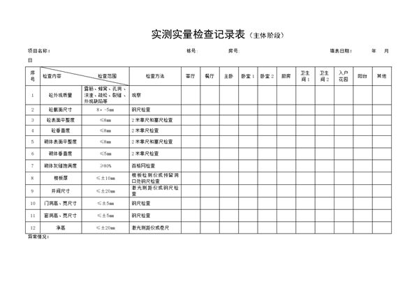 实测实量检查记录表(主体阶段),内容详细,可供网友参考。