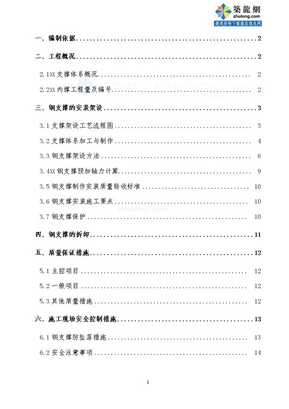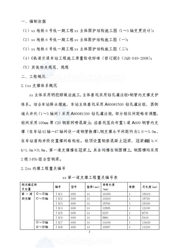 地铁深基坑支护钢支撑安装及拆除施工方案