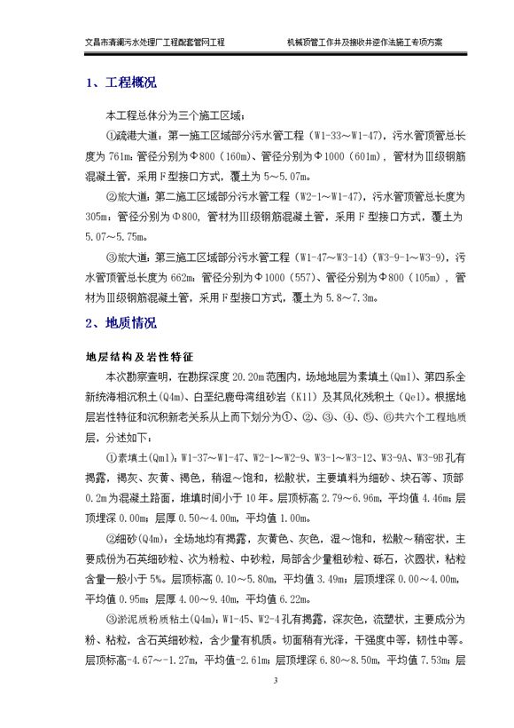①疏港大道:第一施工区域部分污水管工程(W1-33~W1-47),污水管顶管总长度为761m:管径分别为Φ800(160m)、管径分别为Φ1000(601m),管材为Ⅲ级钢筋混凝土管,采用F型接口方