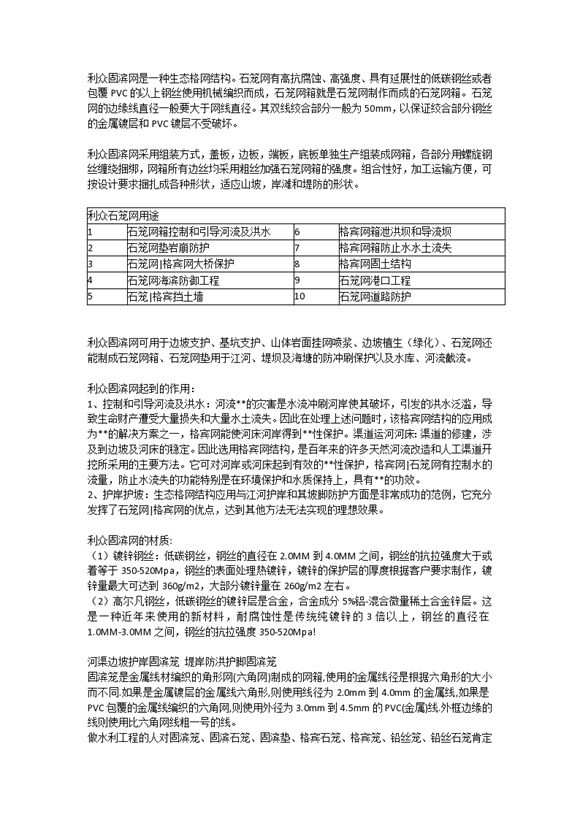 在水利工程中,应用石笼网很经济,石笼网体系由钢丝箱笼和填充料组成,比一般建筑材料成本低,填充料只要能抗风化有一定强度即可,通常工程地点的不同级别的石头可为填料,有时候甚至可以用一些较干净的建筑垃圾作为
