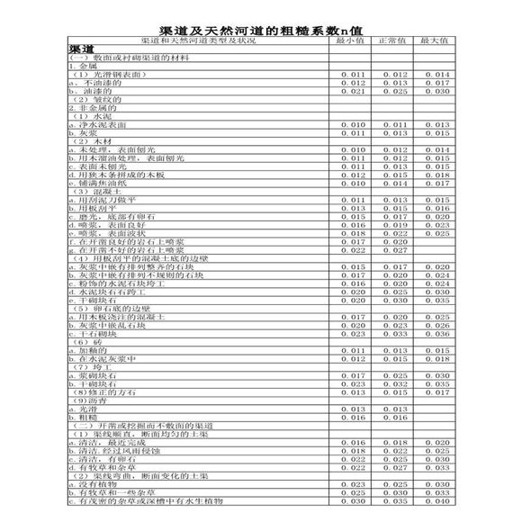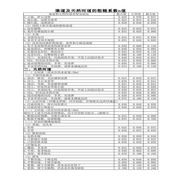 渠道及天然河道的粗糙系数n取值参考表格!!!!!!!!!