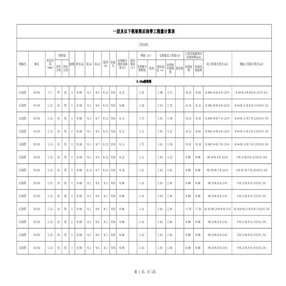 本资料为框架梁混凝土及模板工程量计算表格,内容简介:梁混凝土及模板工程量计算表格,本人苦心编制的,对帐清晰、明了,EXCEL格式。