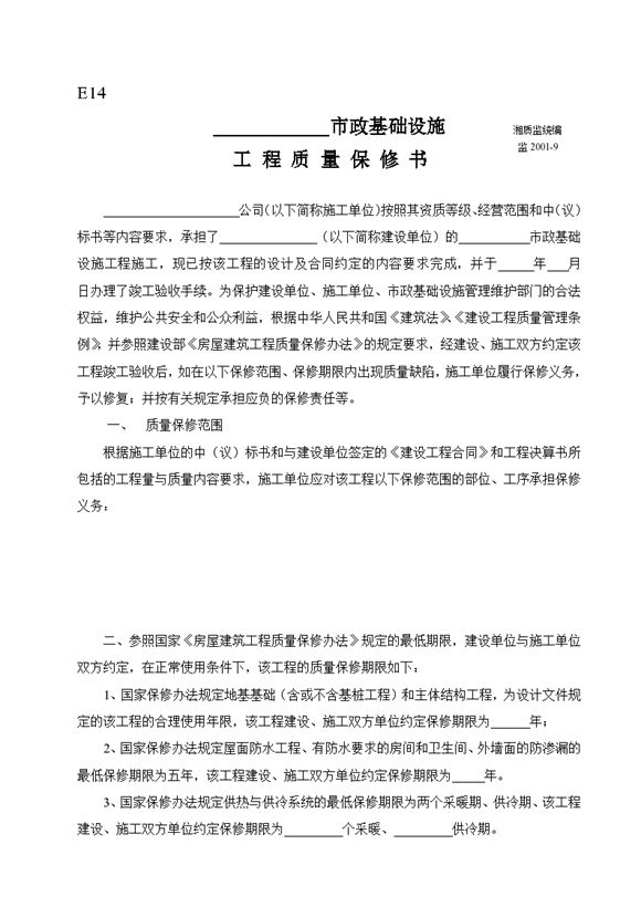 市政基础设施工程质量保修书,设计详实,供设计师参考。