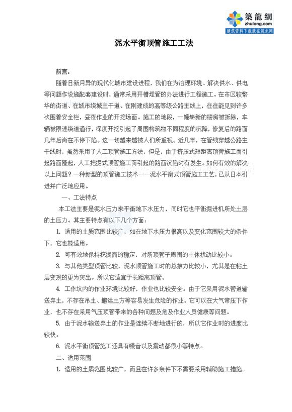 内容简介一、工法特点本工法主要是泥水压力来平衡地下水压力,同时它也平衡掘进机所处土层的土压力。其主要特点有以下几个方面:1.适用的土质范围比较广,如在地下水压力很高以及变化范围较大的条件下,它