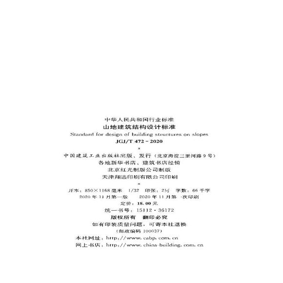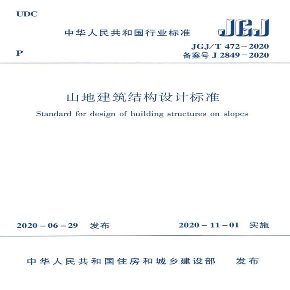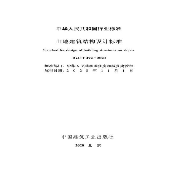 山地建筑结构设计标准JGJT472-2020,最新建筑行业规范,带条文说明,2020年11月1日起实施,以供参考。