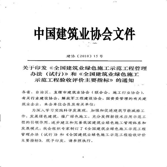 关于印发《全国建筑业绿色施工示范工程管理办法(试行)》和《全国建筑业绿色施工示范工程验收评价主要指标》的通知