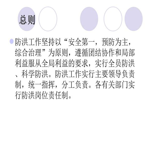 本资料为防洪安全知识培训PPT(内容完整),文档包括:防洪工作坚持以“安全第一,预防为主,综合治理”为原则,遵循团结协作和局部利益服从全局利益的要求,实行全员防洪、科学防洪。防洪工作实行主要领导负责制