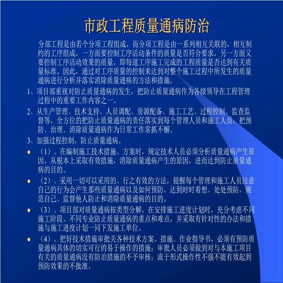 1、项目部重视对防止质量通病的发生,把防止质量通病作为各级领导在工程管理过程中的重要工作内容之一。2、从生产管理、技术支持、人员调配、资源配备、施工工艺、过程控制、监查监督等,全方位的把防止质量