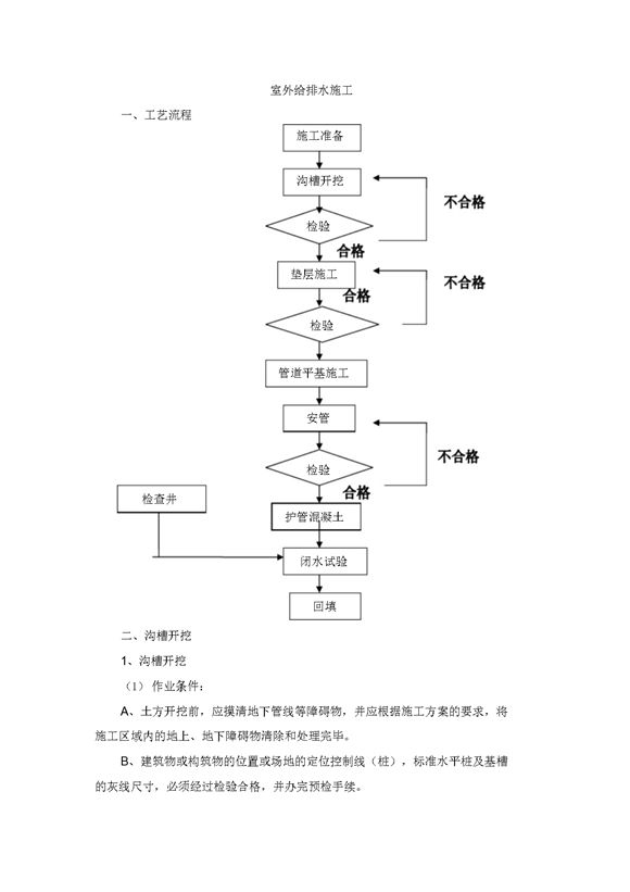 室外给排水施工工艺流程方案