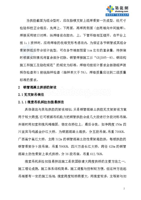 内容简介1拱肋钢管的加工制作拱肋加工前,应依理论设计拱轴座标和预留拱度值,经计算分析后放样,钢管拱肋骨架的弧线采用直缝焊接管时,通常焊成1.2-2.0m的基本直线管节;当采用螺旋焊接管时,一般焊