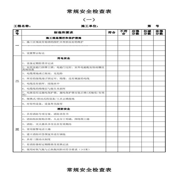 市政工程安全检查表市政工程安全检查表市政工程安全检查表市政工程安全检查表