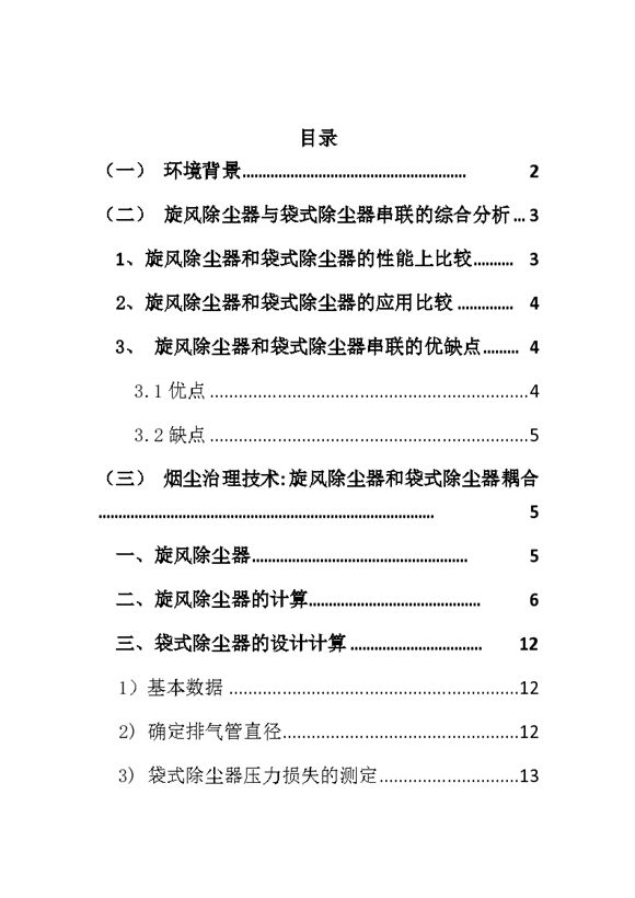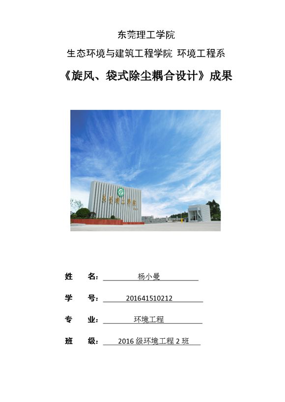 旋风袋式除尘器耦合设计计算 课程设计 设计图cad