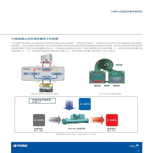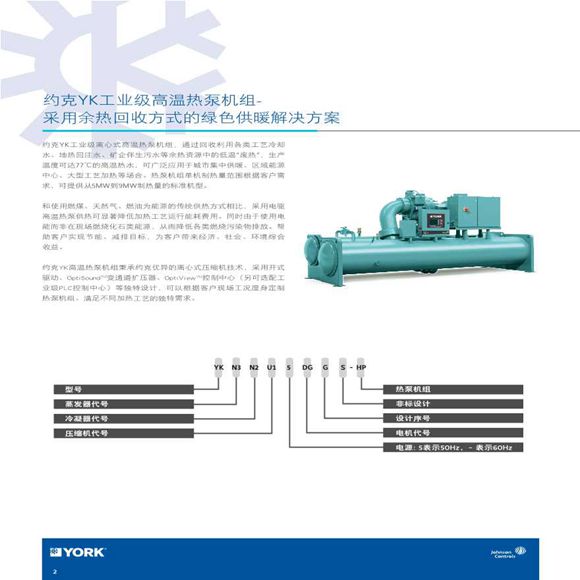 约克YK工业级高温热泵机组-采用余热回收方式的绿色供暖解决方案约克YK工业级离心式高温热泵机组,通过回收利用各类工艺冷却水、地热回注水、矿企伴生污水等余热资源中的低温“废热”,生产温度可
