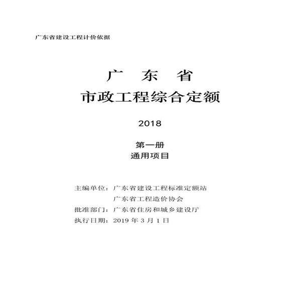 《广东省市政工程综合定额(2018)》(以下简称本综合定额)是在国家标准《建设工程工程量清单计价规范》GB50500-2013、《市政工程工程量计算规范》GB50857-2013、《建设工程劳