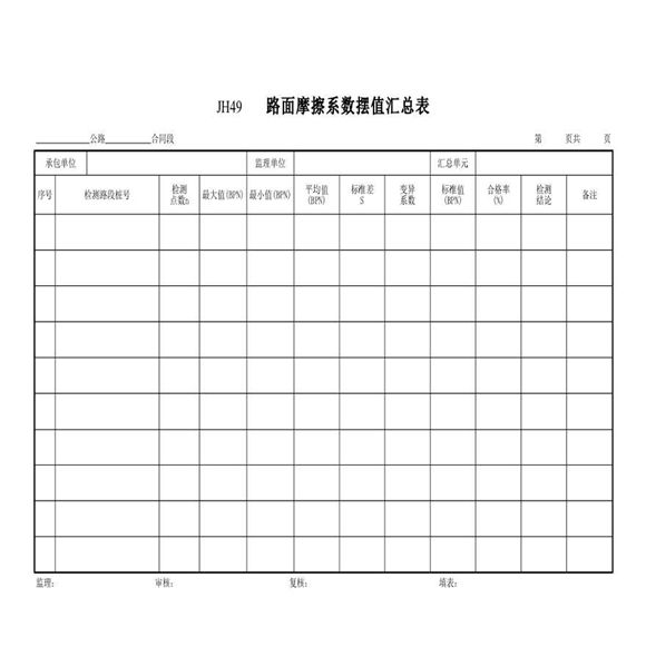某路面摩擦系数摆值汇总表
