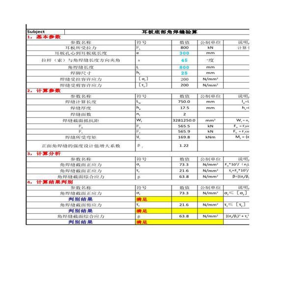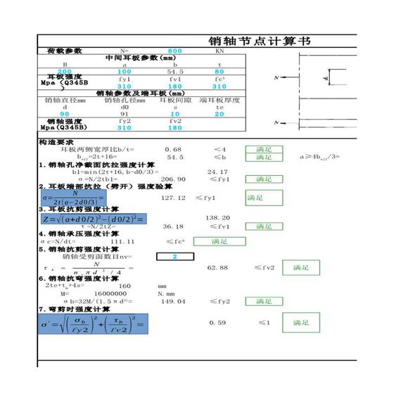 销轴连接节点计算表格是根据现行的最新规范包括钢结构设计标准2017编制的,非常实用的计算表格