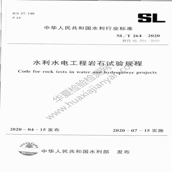 SLT264-2020水利水电工程岩石试验规程,欢迎大家下载使用。