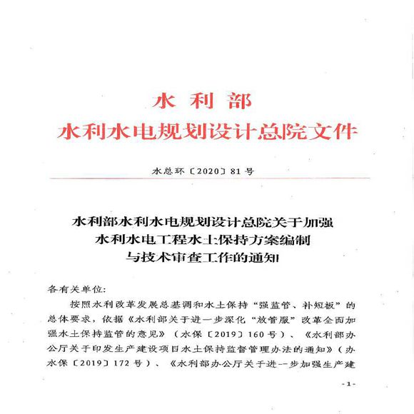 (水总环〔2020〕81号)《水利部水利水电规划设计总院关于加强水利水电工程水土保持方案编制与技术审查工作的通知》