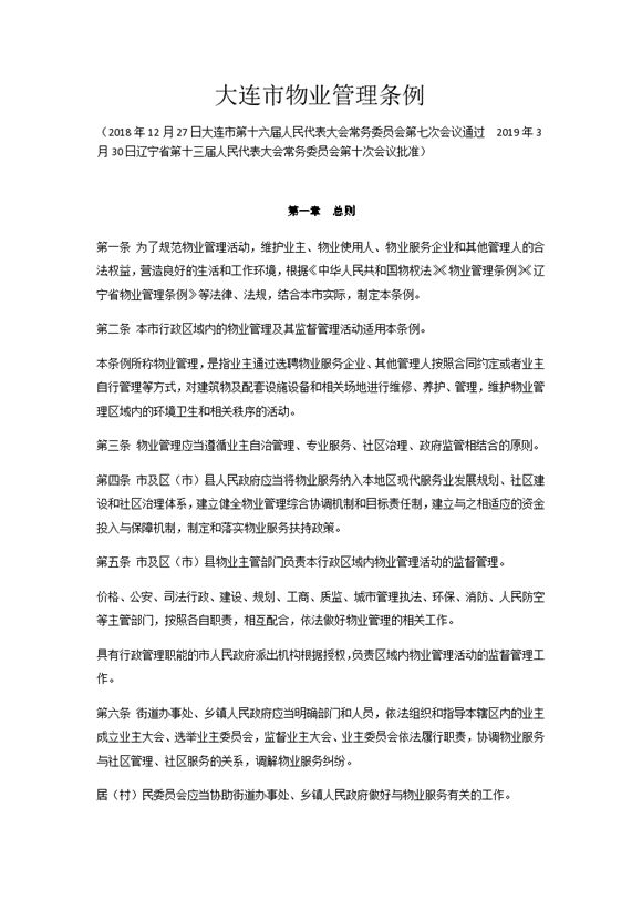 2019年发布的大连市物业管理条例