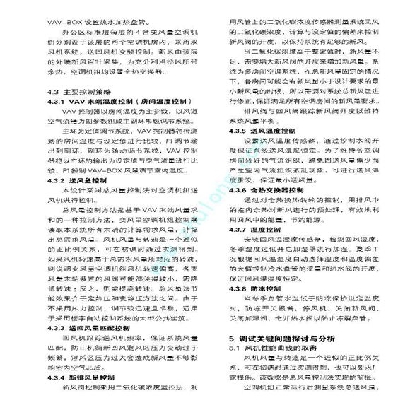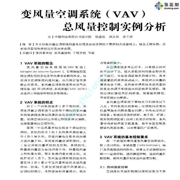 本资料为变风量空调系统(VAV)总风量控制实例分析,文章在介绍变风量空调系统的基本原理及目前采用的主要控制方法基础上,结合工程实例,分析总风量控制系统设计及具体实现。内容详实,值得参考下载。