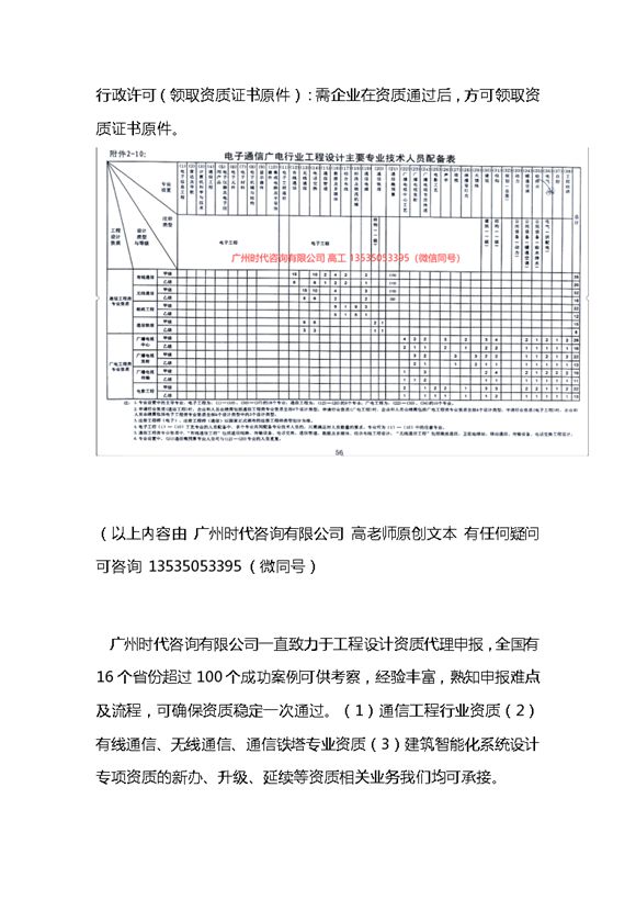 住建部工信部通信行业工程设计有线通信和无线通信资质申请流程及人员配备标准