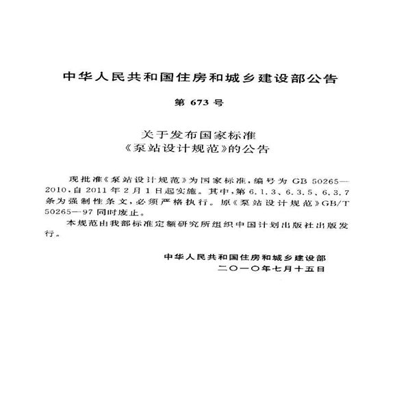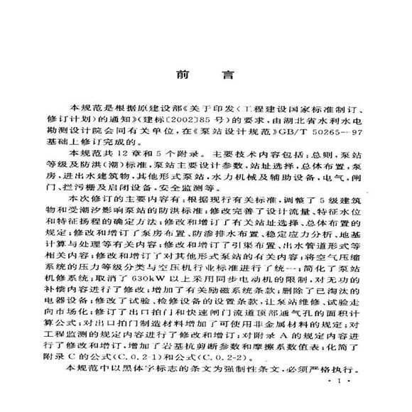 《泵站设计规范》由中国水利部会同有关部门主编并发布,使泵站工程技术先进、安全可靠、经济合理、运行管理方便,提供了很好的依据。