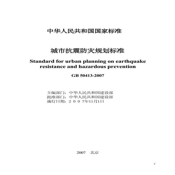 城市抗震防灾规划标准GB50413-2007,本标准是根据建设部《关于印发(2002~2003年度工程建设国家标准制订、修订计划>的通知》(建标(2003)102号)的要求,由北京工业大学抗震减