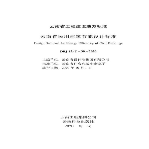 云南省民用建筑节能设计标准DBJ53T-39-2020云南省民用建筑节能设计标准DBJ53T-39-2020云南省民用建筑节能设计标准DBJ53T-39-2020
