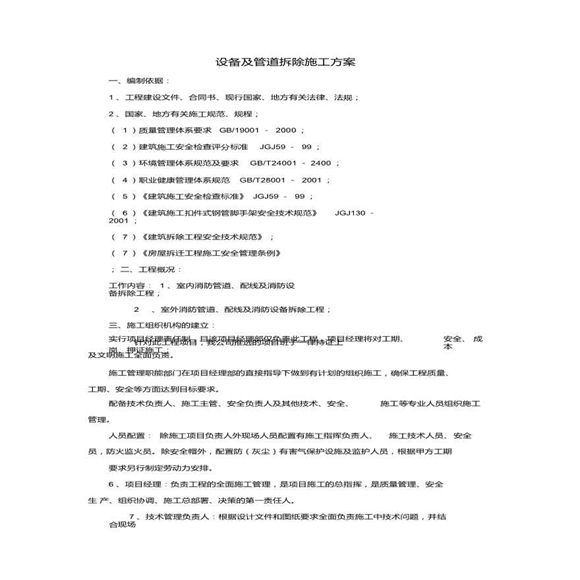 消防设备及管道拆除施工方案