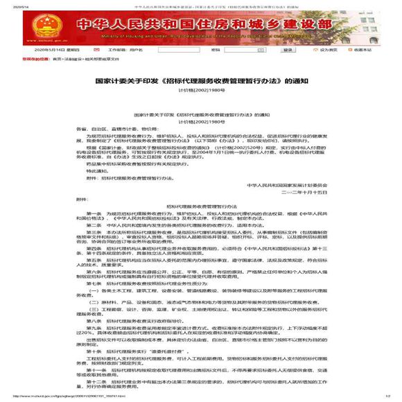 招标代理服务收费管理暂行办法(计价格[2002]1980号).pdf
