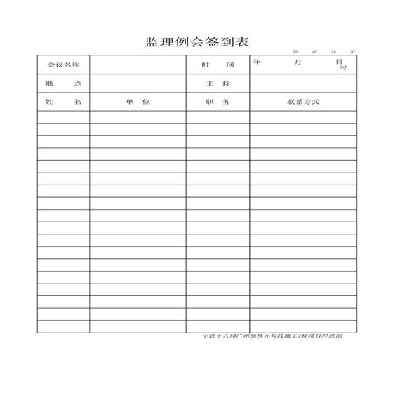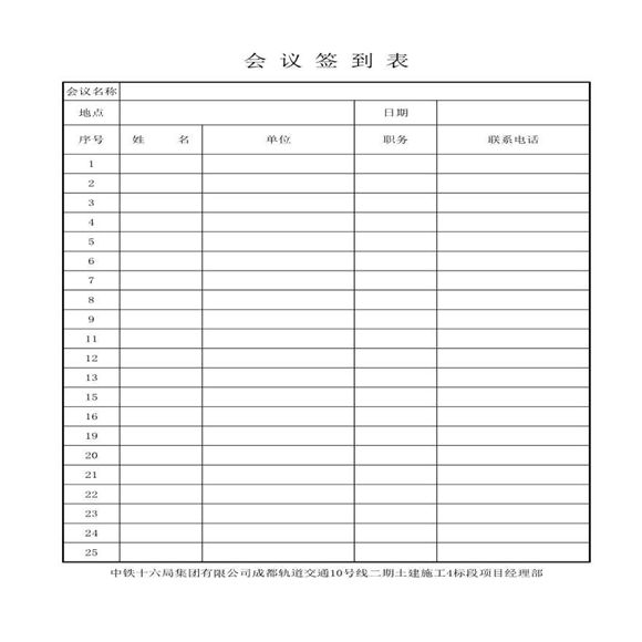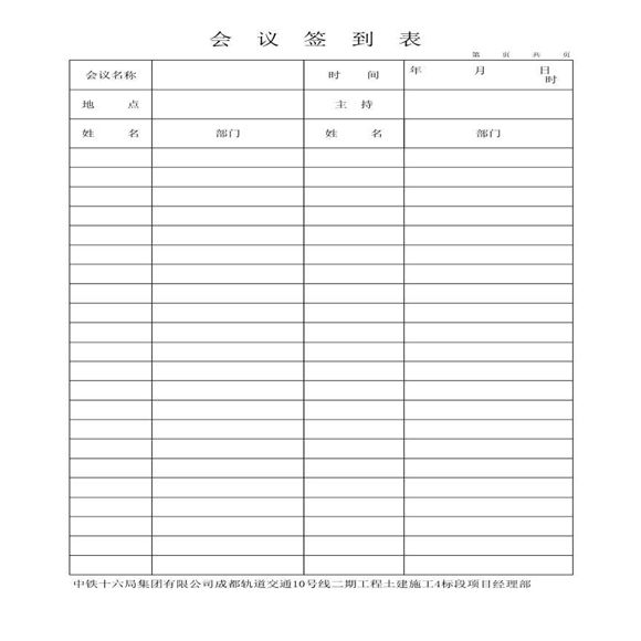 中铁十六局集团有限公司成都轨道交通10号线二期土建施工4标段项目经理部安全教育会议签到表