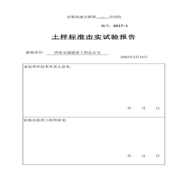 本资料为土样标准击实试验报告,目录齐全,内容完整,可供下载使用