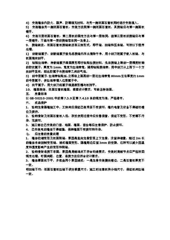 竖龙骨分档:根据隔墙放线门洞口位置,在安装顶地龙骨后,按罩面板的规格900mm或1200mm板宽,分档规格尺寸为450mm,不足模数的分档应避开门洞框边第一块罩面板位置,使破边石膏罩面板不在靠洞框处。