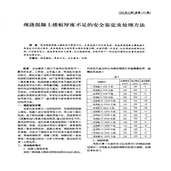 现浇混凝土楼板厚度不足的安全鉴定及处理方法,用于处理遇到混凝土楼板厚度不足如何鉴定及后期修复处理,以供参考。