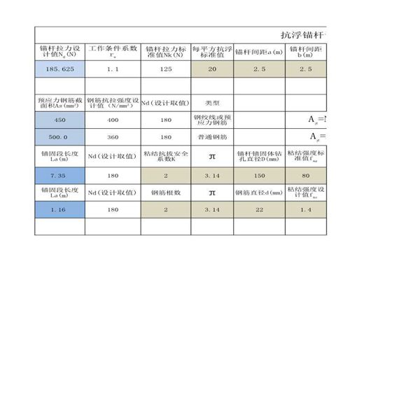12地下室基础计算-抗浮锚杆设计公式(新规范)