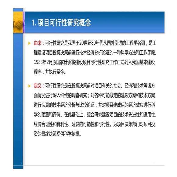 项目可行性研究报告编制指南,PDF格式,共85页,内容如下:一、项目可研概念及作用二、项目申报的基本程序三、可行性研究编制要求
