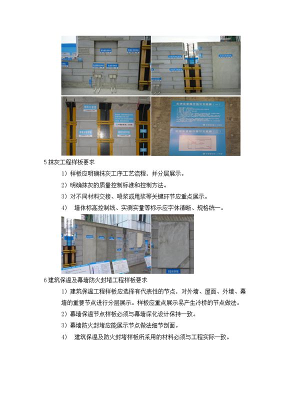 砌筑工程样板所用材料及做法必须和实体一致,且符合地方性要求。2)样板应展示砌筑工艺流程,明确砌体的质量控制标准和控制方法。3)砌筑样板应与相关的线管、线槽、电线盒、二次结构一并展示。4)砌筑工程