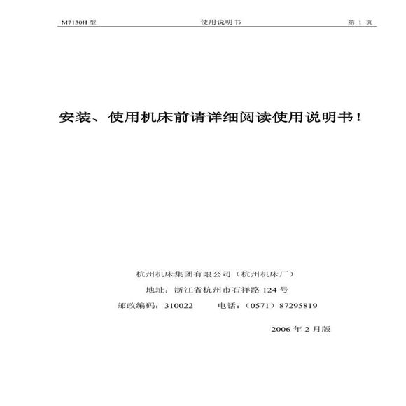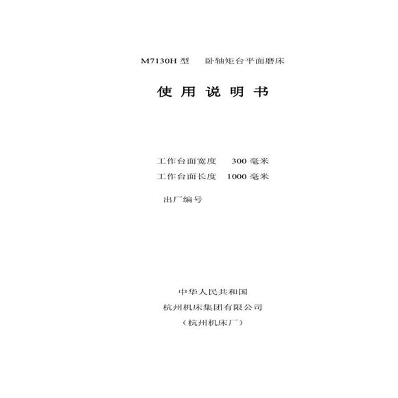 杭州机床厂卧轴矩台平面磨床M7130H磨床说明书含图纸。工作台面长度:1000mm。工作台面宽度:300mm。