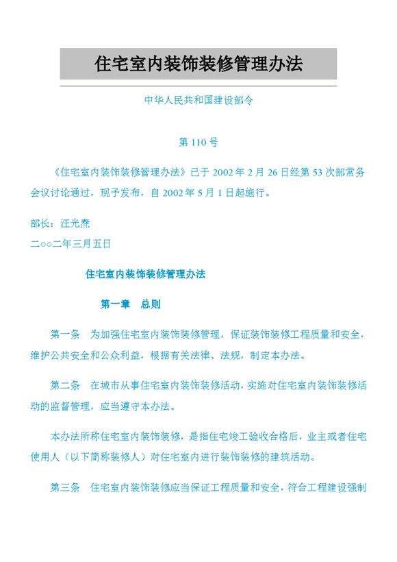 2019年7月9日《住宅室内装饰装修管理办法》已于2002年2月26日经第53次部常务会议讨论通过,现予发布,自2002年5月1日起施行。