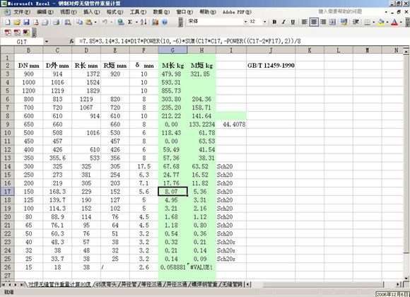 一个excel格式钢制对焊无缝管件重量计算表包括:弯头、大小头、钢管等重量计算