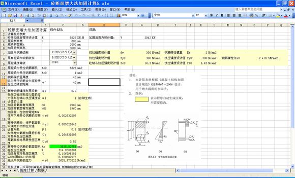 本软件由本人根据GB50367-2006编写,用于砼梁增加截面加固法,本软件在Excel中编写,参数明了,易使用,现与大家分享.