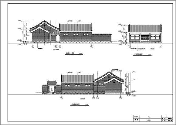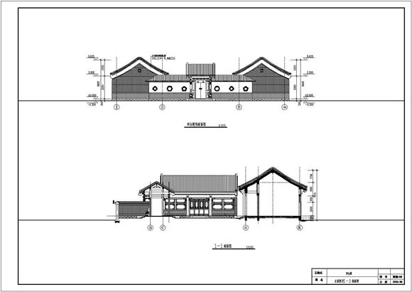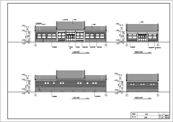 本图为某单层北京经典四合院建筑设计图。该图纸共有6张,其中包括四合院一层平面图、正房南立面图、四合院西南面图等图。内容详尽,可供参考。