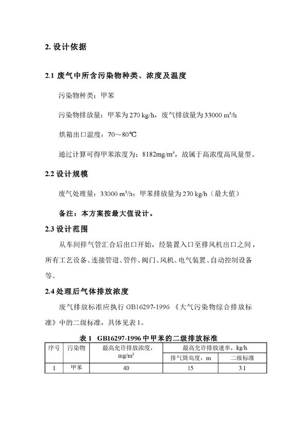 喷漆车间在生产过程中排放出大量的涂层烘干废气,废气中含有较高浓度的甲苯。该废气若不经处理直接排入大气,不仅会污染周围的环境,而且导致了极大的原物料消耗,同时对企业的形象也会造成一定的影响,为此,必须进