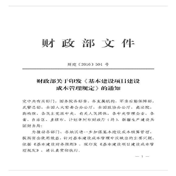 财建(2016)504号关于印发《基本建设项目建设成本管理规定》的通知