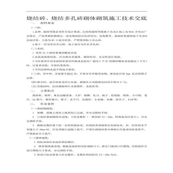 烧结砖、烧结多孔砖砌体砌筑施工方案