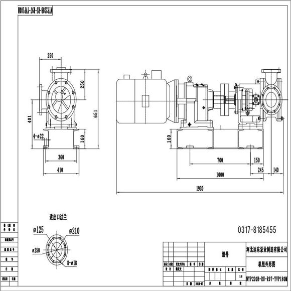 高粘度环氧树脂泵外形安装尺寸图,该泵为内齿轮旋转泵适合泵送各种粘度的液体.不能泵送含固体颗粒的液体