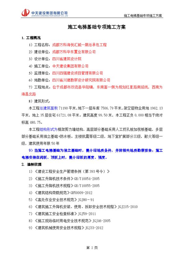 本工程总建筑面积71190平米,地下一层车库7506.79平米,架空层物业用地1962.13平米,地上35层住宅61721.08平米。建筑高度99.50米,本工程正负0.000相当于绝对标高480.7