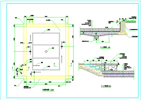 本图纸包含门球场的平面尺寸、剖面、排水做法详图,基础做法图。
