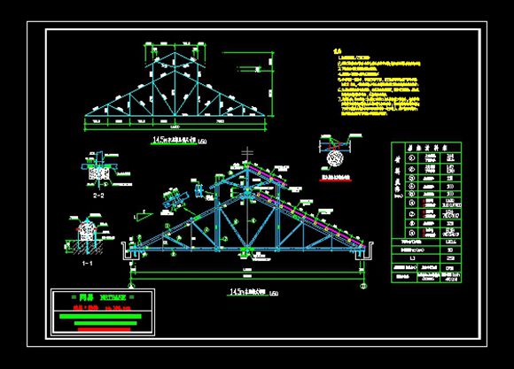 木屋架,单层,跨度15m,风压0.5,恒载0.5,活载0.5,单位kn/m2.大样及详图.