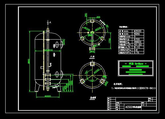 φ2500mm活性炭过滤器结构图,处理水量40-50T/H。